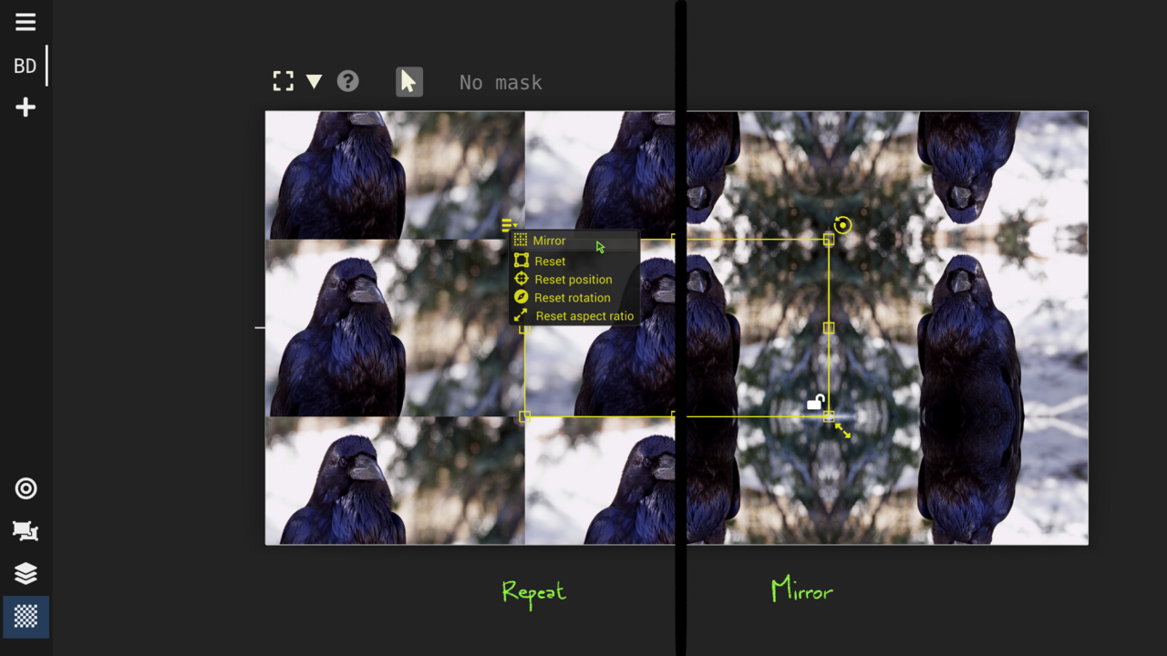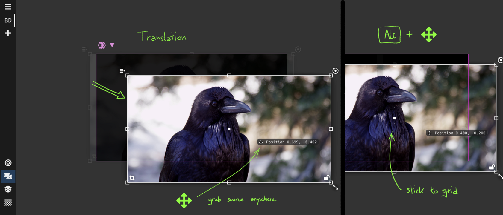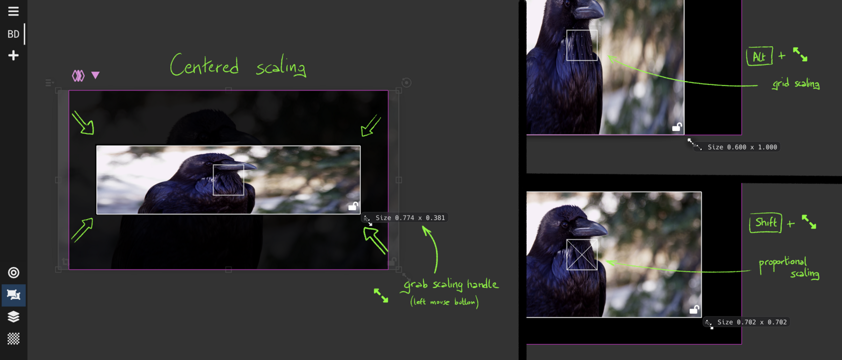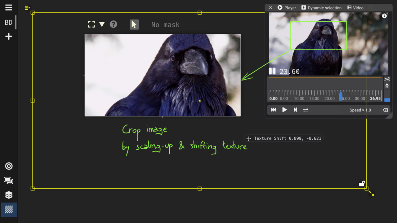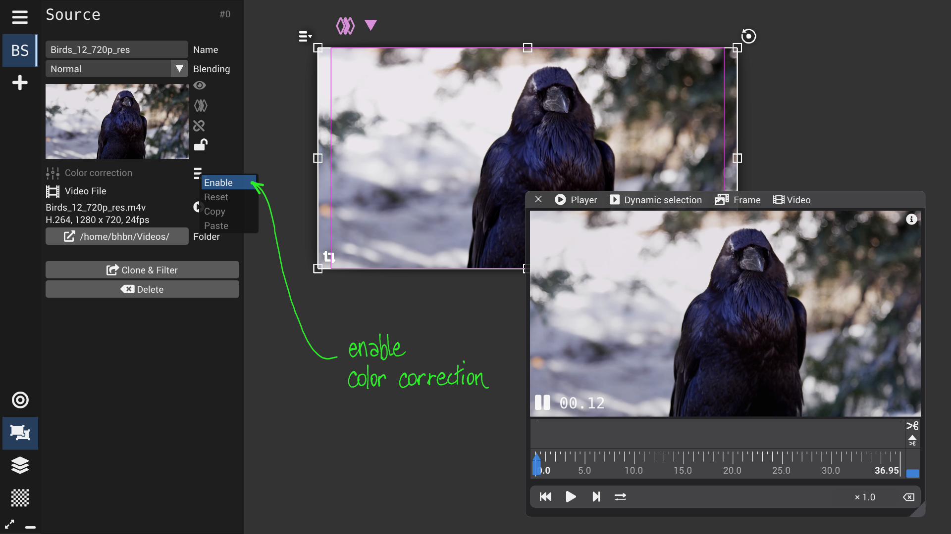 During recording, all normal operations in vimix are possible. The output window shows the indication of recording duration.