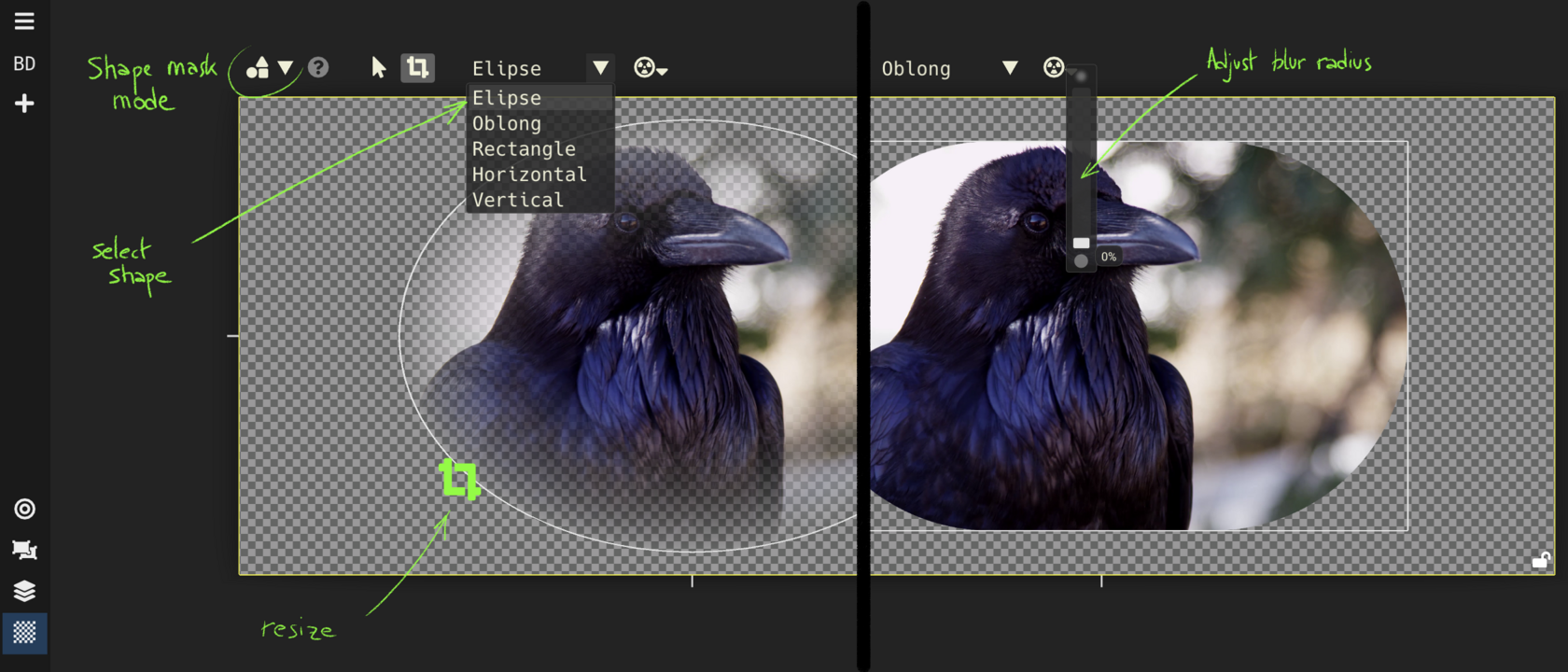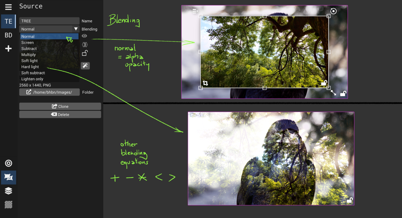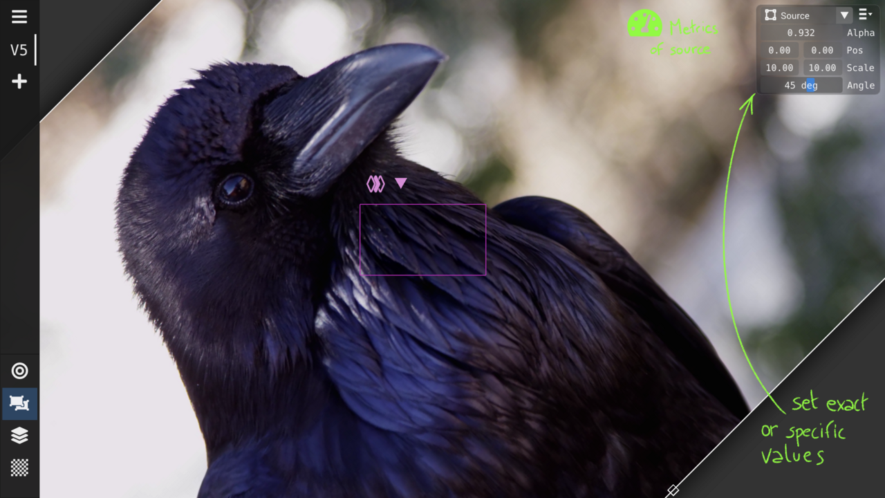 Codec: Video file internal format; this affects quality and recording speed. H264 are the fastest (and GPU accelerated). Others offer a better image quality preservation but are slower.Framerate: Frame rate of the video; 15, 25 or 30 FPS (the higher, the more to encode).Buffer: How much RAM you wish to allocate for the recording buffer: large buffer allows storing in RAM some seconds of rendering to give time for the computer to encode the video in the background (after recording stopped).Priority: If the buffer gets full, it can happen that the recording gets delayed from the real time; vimix can either give priority to maintain a constant framerate in the produced video (the duration is altered), or to ensure frame timestamps and duration are correct (the framerate is altered).